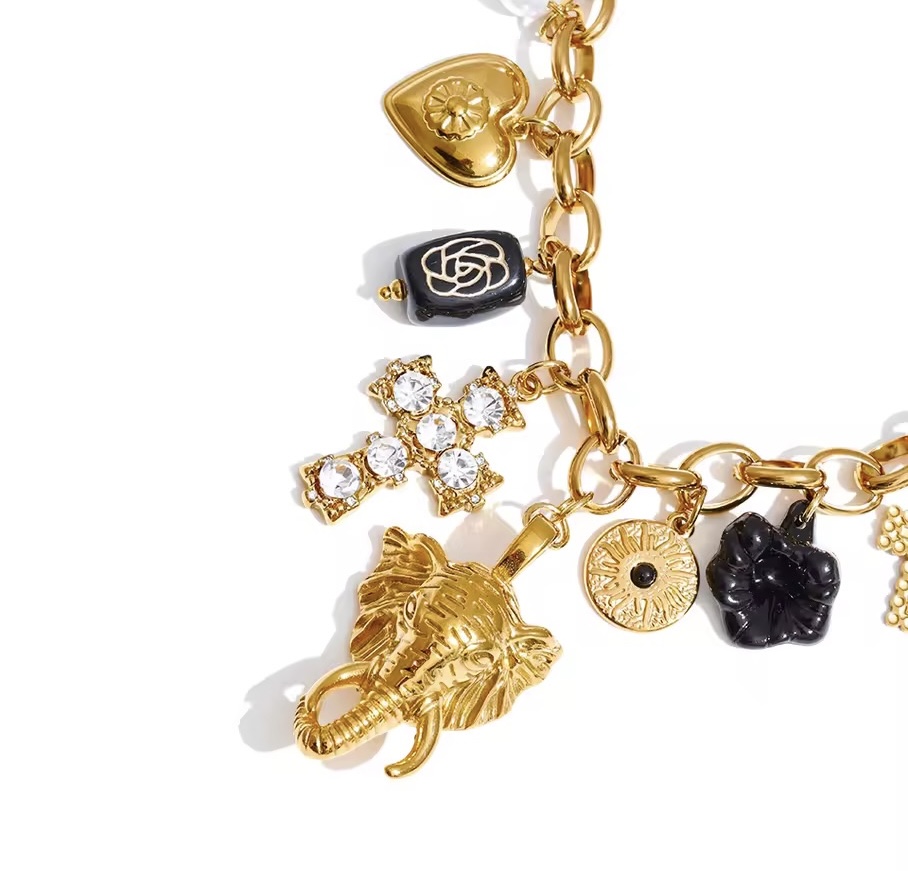 Material: Edelstahl vergoldet, Zirkoniasteiner, Imitationsperle,